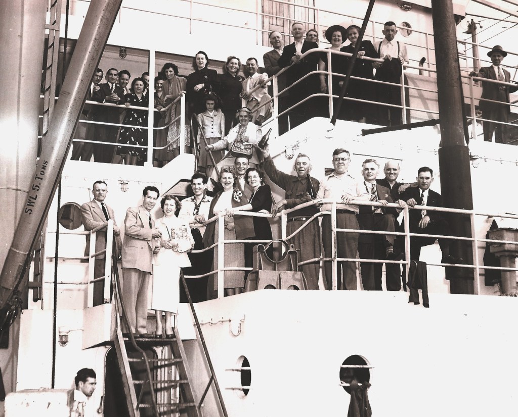 V »kovčku« sem našel zanimivo fotografijo naših izseljencev na jugoslovanski ladji v New Yorka. Fotografija je bila posneta 19.5. 1953 leta. Res je, da bi lahko bila posneta tudi v drugih pristaniščih mest v katerem je živela naša skupnost. Spominjam se, da so podobne fotografije bile posnete tudi v Kanadi, Argentini, Avstraliji. Kakor koli , ta dan 19.maja je bila Nedelja. Večja skupina naših izseljencev jo je izkoristila za obisk jugoslovanske ladje, ki je priplula v New yorško pristanišče. Žal na fotografiji »Kostich photos » z Long Islanda N.Y. city ni navedeno ime ladje.