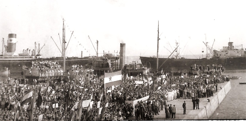 Eden izmed sedemdesetih slovenskih povratnikov iz Kanade Lojze Zdravje, je napravil pričujočo fotografijo z krova ladje Partizanka leta 1948 v Reškem pristanišču, kjer jih je pričakala množica ljudi.