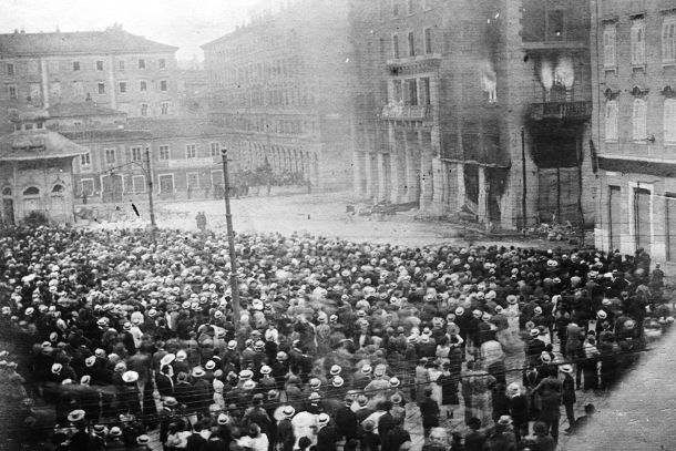 Medtem so se jim karabinjerji rogali in jim grozili. Preganjali in prerivali so jih okrog pogorišča oni pa so morali s seboj vlačiti vso borno prtljago s katero so se nameravali vkrcati na ladjo. Številni ljudje so se jokali, zlasti primorska dekleta, ki jim je ta dom bil priljubljeno shajališče. Ko so se fašisti slednjič le naužili svoje surovosti, so jim odstopili prostor pred kolodvorom in jih pustili na prostem vso noč, čeprav so bili postajni prostori domala prazni.