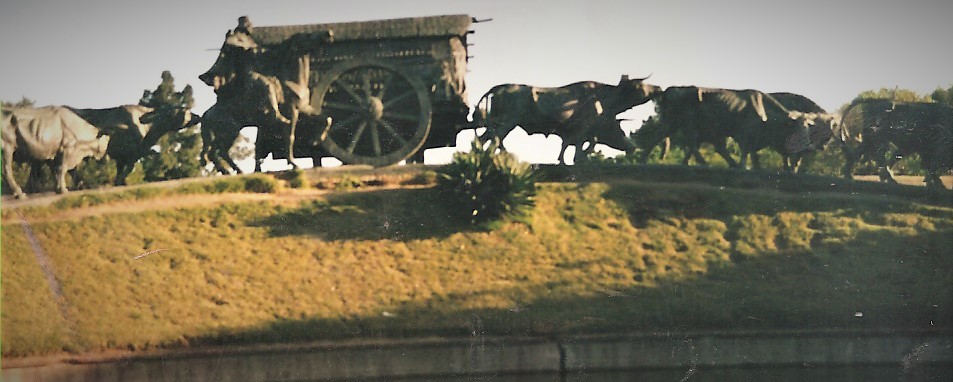 Gre namreč za upodobitev dveh vozov; prvega, imenovanega “la carreta« (dvokolnica), ki so jih uporabljali pri delu na polju prvi evropski naseljenci (Španci, Italijani) – le ti so se začeli naseljevati ob drugem največjem porečju na svetu –Rio de la plati ( Srebrni reki), drugi kip pa predstavlja par tako voz, le da je to poštni voz – »la diligenzia«. Pošta pa je ena izmed najpomembnejših javnih institucij v življenju kateregakoli priseljenca oziroma izseljenca.