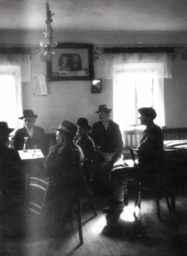 Fotograf Ante Kornič je neko nedeljo, pred začetkom druge svetovne vojne, obiskal predmestno gostilno v Ljubljani. Gostje v njej so bili pretežno moški. Takrat je bilo to glavno mesto obveščanja in seznanjanja. Zato so se obiskovalci poslušali in niso govorili en čez drugega oziroma eden mimo drugega. Niso bili razoglavi, mogoče zaradi –»saj bom šel kmalu domov«. Bolj ko je dopoldansko sonce prediralo cigaretne oblake v gostinski sobi bolj je postajalo jasno, da si imajo vedno več za povedati.