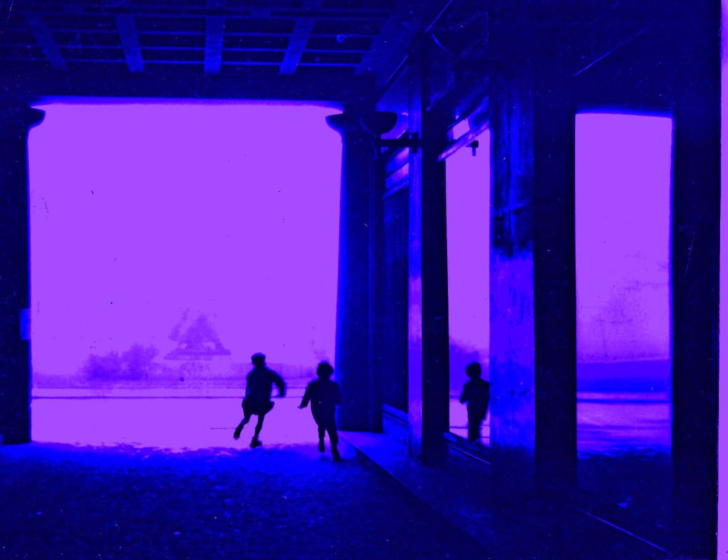 Ko gledam fotografijo, se mi dozdeva, da fantiča tečeta tako kot so verjetno kdaj pa kdaj med drugo svetovno vojno po tej pasaži tekli ilegalci. Na fotografiji se seveda samo igrata. Zavila bosta na desno, proti Dunajski, mimo Narodne banke, vhoda v Nebotičnik in papirnice. In že bosta pred semaforjem pred Šestico. Ne tu sem ne bosta tekla. Nasproti je »Slavija« (Ministrstvo za notranje zadeve), tja tudi ne bosta šla, vedno je tam noč in dan policist. Torej ostaja jima le, da prečkata Štefanovo, kjer nikoli ni bil hiter promet in se bosta ob stavbi »Slavije« in prav mimo spomenika Ilegalcem spustila v park.