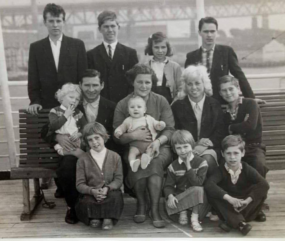 Foto: Družina Arno van der Plaat iz Roterdama je leta 1960 z enajstimi otroci na Watermanu plula v Avstralijo.