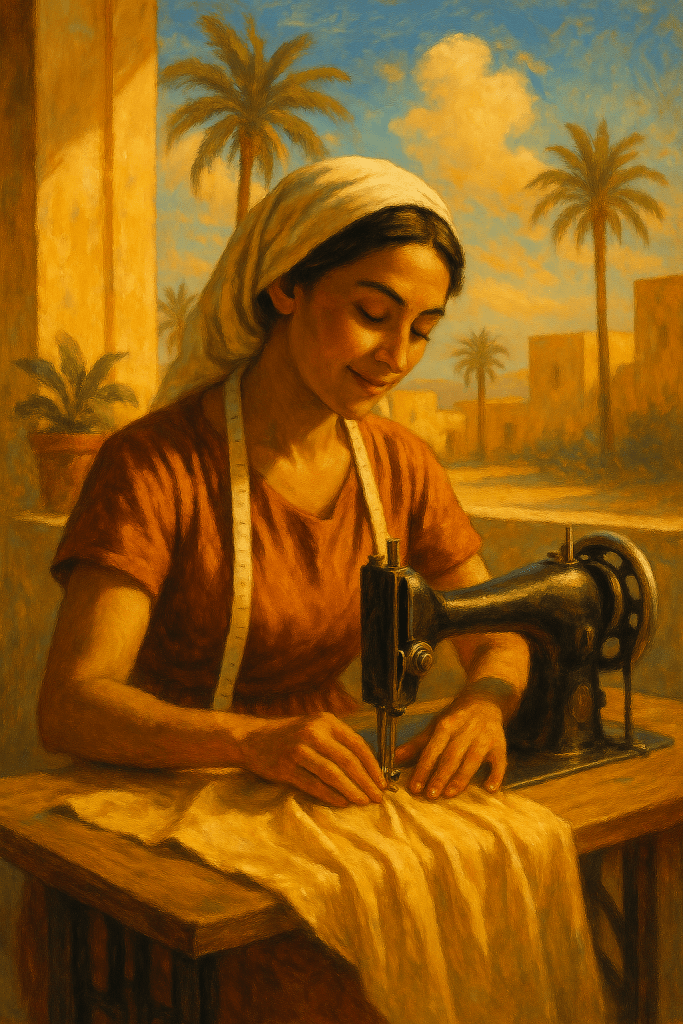 Pri rosnih osemnajstih letih se je odločila za pogumno spremembo in odšla k svoji teti v Aleksandrijo v Egiptu. V tujem svetu, daleč od domačih krajev, si je ustvarila novo življenje in se zaposlila kot krojačica in šivilja. Njene roke so spretno oblikovale tkanine v prelepa oblačila, kar ji je prineslo spoštovanje in ugled. Njena umetelnost in natančnost sta jo kmalu naredili cenjeno mojstrico svojega poklica.