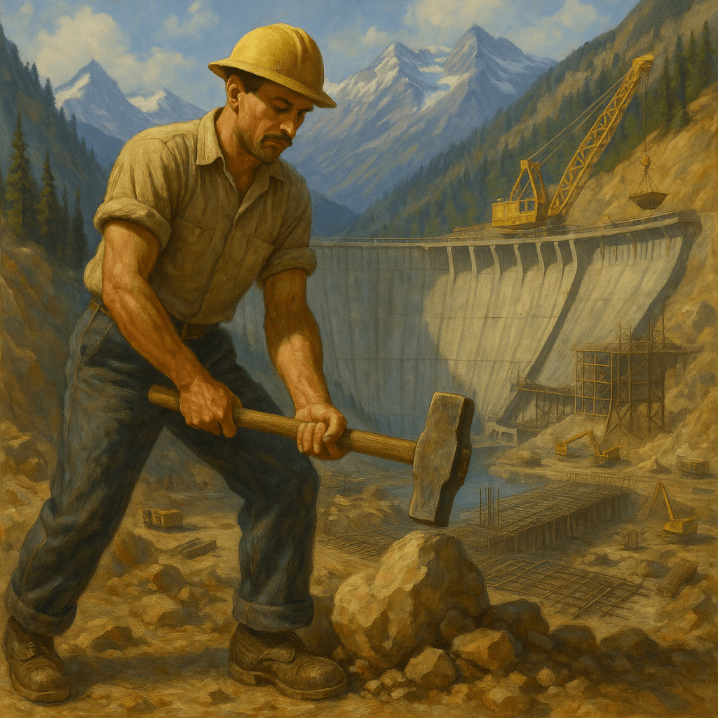Njegova prva večja delovna izkušnja v Avstraliji je bila povezana z velikim infrastrukturnim projektom v narodnem merilu – gradnjo hidroelektrarne v goratem predelu Snowy Mountains. Tam, med snegom, betonom in težkimi stroji, je Evgen kot delavec prispeval svoj delež k enemu najpomembnejših projektov v zgodovini Avstralije.